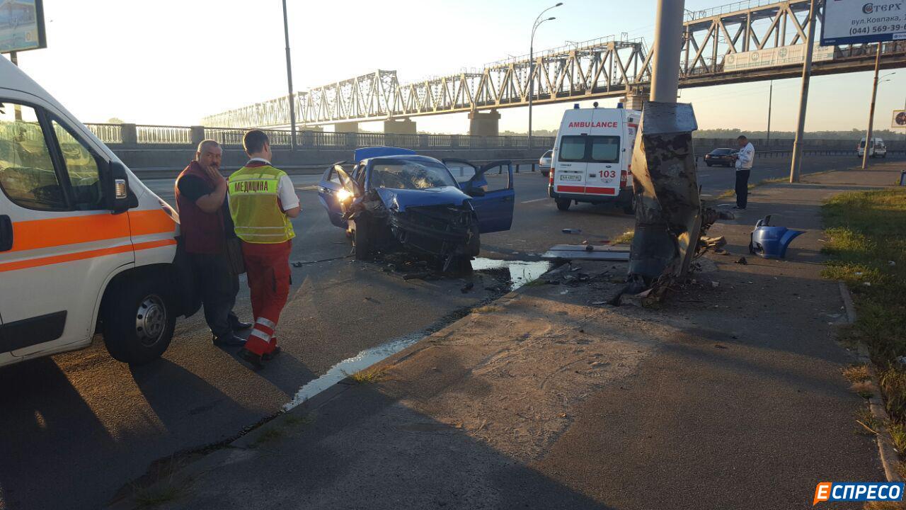 З'ясовано, що автомобіль таксі марки Шевроле Авео рухався з Троєщини в напрямку центру. З невідомих достеменно причин водій не впорався з керуванням, в результаті чого машина врізалася у стовп. В результаті ДТП постраждав водій таксі, що не скористався ременем безпеки. Його госпіталізували з серйозними ушкодженнями: закритою черепно-мозкову травмою, закритою травмою грудної клітини та живота. А от його пасажирка, яка також не скористалася ременем безпеки, отримала травми, несумісні з життям - вона померла на місці.