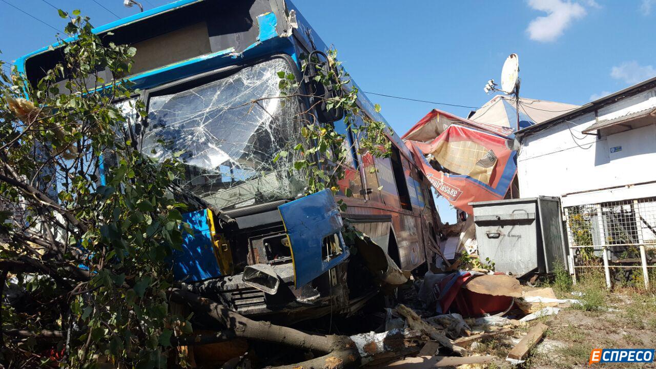 У Києві автобус з'їхав з дороги і протаранив кафе, є постраждалі
