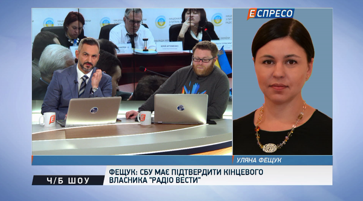 "Крім того аналізу, який ми зробили всередині Нацради, ми ще звернулися до СБУ з тим, щоб вони підтвердили якусь інформацію щодо того, хто є кінцевим бенефіціарним власником "Радио Вести", - заявила Фещук.