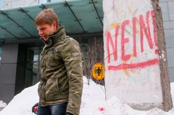 - У німецькому посольстві в Києві назвали порушенням Віденської дипломатичної конвенції дії нардепа Олексія Гончаренка, який розмалював червоної фарбою уламок Берлінської стіни перед будівлею дипмісії.