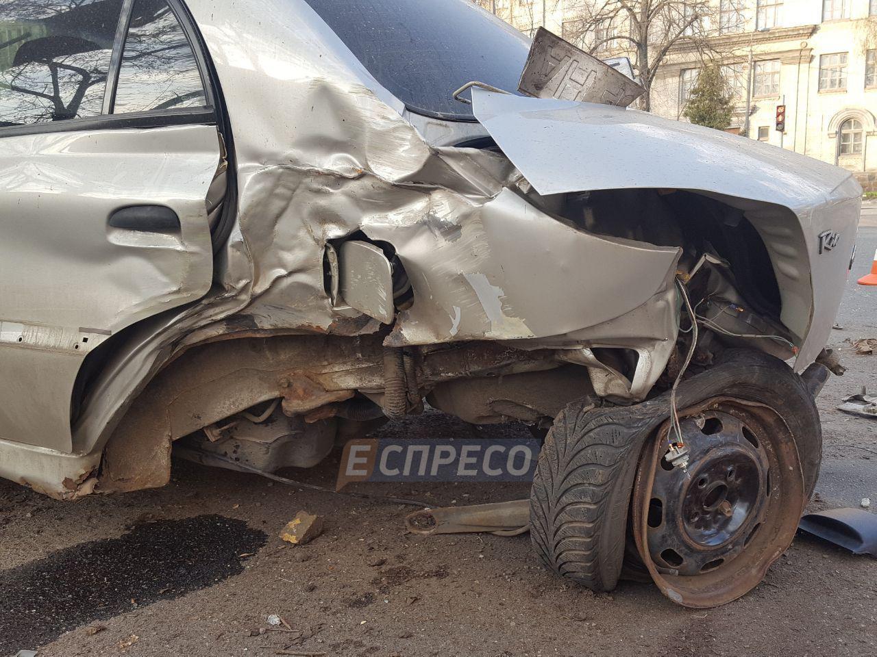 Спочатку корейське авто вилетіло на тротуар та врізалося у зупинку громадського. На щастя, суботнього ранку на зупинці людей не було, інакше могло б бути кілька жертв серед пішоходів... Далі машина від зіткнення з зупинкою підлетіла у повітря, продовжила рух і на висоті близько двох метрів врізалася лівим боком у дерево, в результаті чого в ней майже відлетіли задні колеса.
